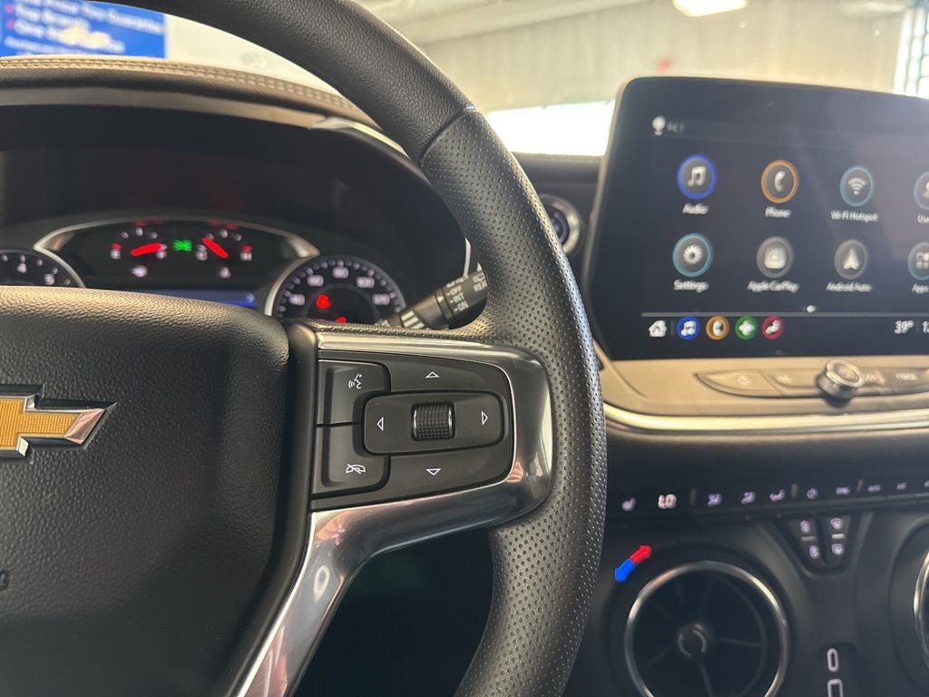 This vehicle Contains the following features and options: Convenience Package (Adaptive Cruise Control, Black Roof-Mounted Side Rails, Enhanced Automatic Emergency Braking, Inside Rear-View Auto-Dimming Mirror, Rear Power Programmable Liftgate, Universal Home Remote, and Wireless Charging), Driver Confidence Package (Lane Change Alert with Side Blind Zone Alert, Rear Cross Traffic Alert, and Rear Park Assist with Audible Warning), Interior Protection Package (Premium All-Weather Cargo Mat and Premium All-Weather Floor Mats), Preferred Equipment Group 2LT, 170 Amp Alternator, 3.47 Final Drive Axle Ratio, 4-Way Manual Front Passenger Seat Adjuster, 4-Wheel Disc Brakes, 6 Speakers, 6-Speaker Audio System Feature, 8-Way Power Driver Seat Adjuster, ABS brakes, Air Conditioning, Alloy wheels, AM/FM radio: SiriusXM with 360L, Apple CarPlay/Android Auto, Auto High-beam Headlights, Automatic temperature control, Brake assist, Bumpers: body-color, Child-Seat-Sensing Airbag, Compass, Delay-off headlights, Driver door bin, Driver vanity mirror, Dual front impact airbags, Dual front side impact airbags, Electronic Stability Control, Emergency communication system: OnStar and Chevrolet connected services capable, Four wheel independent suspension, Front anti-roll bar, Front Bucket Seats, Front Center Armrest, Front dual zone A/C, Front reading lights, Fully automatic headlights, Heated door mirrors, Heated Driver and Front Passenger Seats, Heated front seats, Illuminated entry, Knee airbag, Leather Shift Knob, Low tire pressure warning, Occupant sensing airbag, Outside temperature display, Overhead airbag, Overhead console, Panic alarm, Passenger door bin, Passenger vanity mirror, Power door mirrors, Power Driver Lumbar Control, Power driver seat, Power steering, Power windows, Premium audio system: Chevrolet Infotainment 3 Plus, Premium Cloth Seat Trim, Radio data system, Radio: Chevrolet Infotainment 3 Plus System, Rear anti-roll bar, Rear reading lights, Rear seat center armrest, Rear window defroster, Rear window wiper, Remote keyless entry, Ride and Handling Suspension, Security system, SiriusXM with 360L, Speed control, Speed-sensing steering, Split folding rear seat, Spoiler, Steering wheel mounted audio controls, Stop-Start Engine Control System, Tachometer, Telescoping steering wheel, Tilt steering wheel, Traction control, Trip computer, Variably intermittent wipers, Voltmeter, and Wheels: : 18 Grazen Metallic Aluminum.
