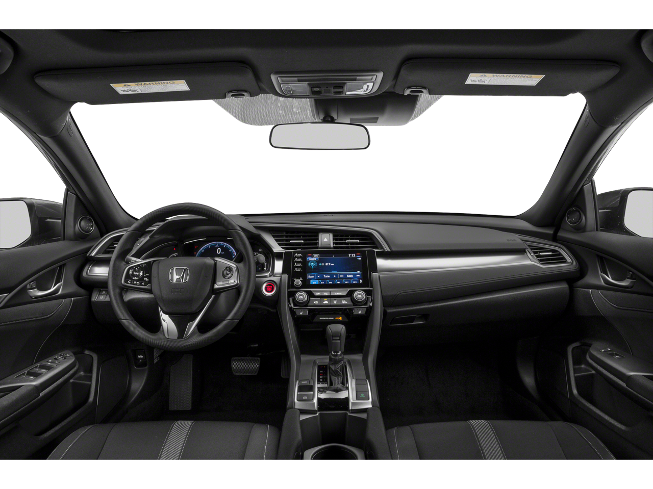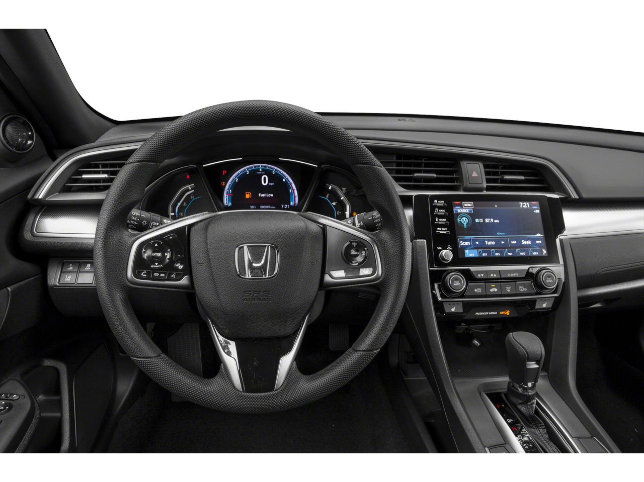 This vehicle Contains the following features and options: 17 Alloy Wheels, 4-Wheel Disc Brakes, 8 Speakers, ABS brakes, Air Conditioning, Alloy wheels, AM/FM radio: SiriusXM, Apple CarPlay/Android Auto, Automatic temperature control, Brake assist, Bumpers: body-color, Delay-off headlights, Driver door bin, Driver vanity mirror, Dual front impact airbags, Dual front side impact airbags, Electronic Stability Control, Emergency communication system: HondaLink, Exterior Parking Camera Rear, Fabric Seating Surfaces, Forward collision: Collision Mitigation Braking System (CMBS) + FCW mitigation, Four wheel independent suspension, Front anti-roll bar, Front Bucket Seats, Front Center Armrest, Front dual zone A/C, Front fog lights, Front reading lights, Fully automatic headlights, Heated door mirrors, Illuminated entry, Low tire pressure warning, Occupant sensing airbag, Outside temperature display, Overhead airbag, Overhead console, Panic alarm, Passenger door bin, Passenger vanity mirror, Power door mirrors, Power moonroof, Power steering, Power windows, Radio data system, Radio: 180-Watt HD Audio System, Rear anti-roll bar, Rear seat center armrest, Rear window defroster, Rear window wiper, Reclining Front Bucket Seats, Remote keyless entry, Security system, Speed control, Speed-sensing steering, Split folding rear seat, Spoiler, Steering wheel mounted audio controls, Tachometer, Telescoping steering wheel, Tilt steering wheel, Traction control, Trip computer, and Variably intermittent wipers.
